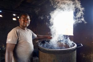 La biomasse utilisée comme matière première est un mélange composé pour 1/3 de déchets organiques (bouse de vache ou autres) et 2/3 d’eau. Ce mélange est introduit dans le digesteur par gravité, le gaz produit par fermentation sort naturellement par le haut du digesteur, il est filtré et dirigé vers les postes de cuisson en cuisine, l’engrais est collecté à la sortie du digesteur.