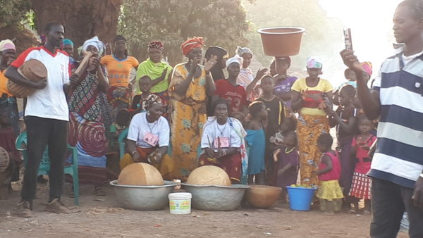 Het hele dorp Oudoumakoro verwelkomde onze vrijwilligers voor de tweede fase van hun missie, met gastvrije toespraken, dansen en traditionele muziek.
