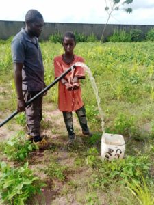 Dans ces 2 écoles, les puits ont également été équipés de pompe solaire, alimentées chacune par 4 PV de 260Wc récupérés, ce qui ainsi leur permet d’assurer une hygiène de base mais aussi de réhabiliter les potagers autour de ces bâtiments.